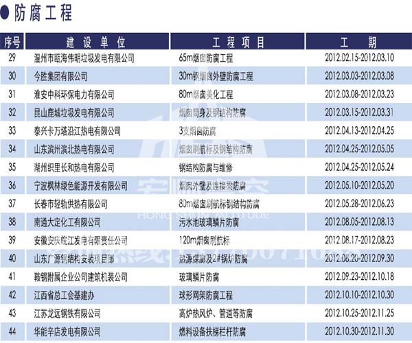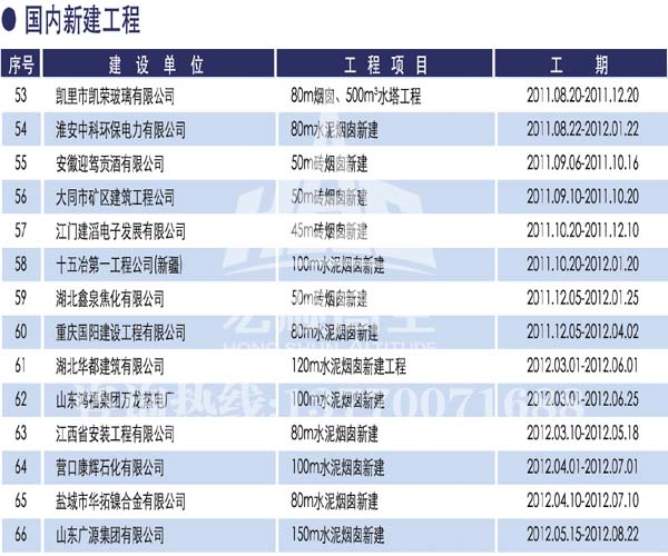 宏順建設(shè)工程有限公司是國(guó)家批準(zhǔn)成立的專(zhuān)業(yè)高空作業(yè)企業(yè):承攬過(guò)(國(guó)內(nèi).國(guó)外)煙囪新建、煙囪防腐、磚煙囪新建、煙囪改造、煙囪維修、煙囪脫硫防腐、煙囪拆除加高、煙囪滑膜等高空作業(yè)工程。具有“不搭腳手架 、 不需要停產(chǎn)”施工特點(diǎn)。