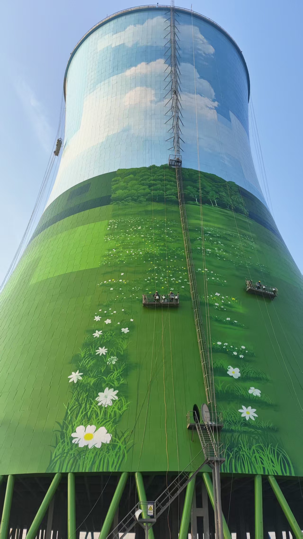 冷卻塔彩繪專(zhuān)家宏順建設(shè)完成高80米的巨型雙曲線(xiàn)塔身化作立體畫(huà)布